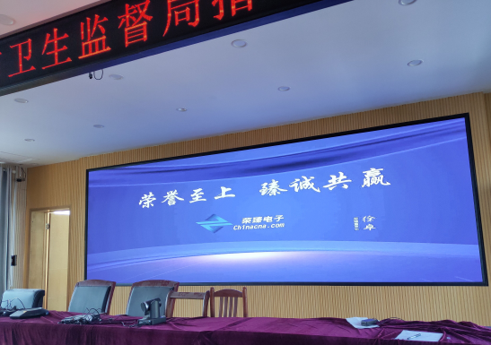 本項目案例是我公司(榮臻電子)在吉林某衛生監督局安裝的一個P1.25小間距全彩顯示屏以及P10單色條屏項目,項目的具體展示效果如下: