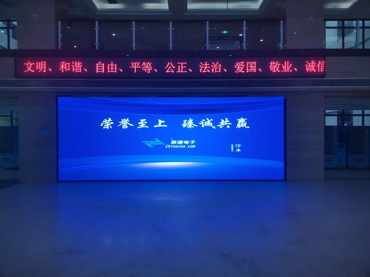 本項目案例是我公司(榮臻電子)在東北地區某公司安裝的P2.5LED小間距全彩顯示屏項目,項目的具體展示效果如下:
